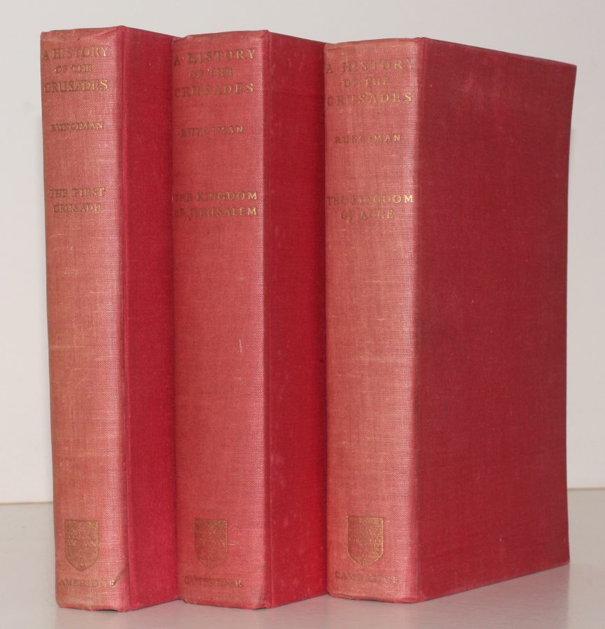 Bright, crisp set of the standard reference. The set comprises: Vol. I: The First Crusade and the Foundation of the Kingdom of Jerusalem (1951); Vol. II: The Kingdom of Jerusalem and the Frankish East 1100-1187 (1952); Vol. III: The Kingdom of Acre and the Later Crusades (1954). COMPLETE SETS OF THE ORIGINAL EDITION ARE SCARCE IN THIS CONDITION. Please note that additional postage will be required for shipping outside the UK.