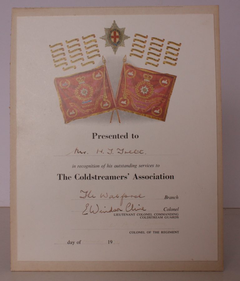 Coldstreamers’ Association Certificate signed by Lieutenant-Colonel Evered Ivor Windsor-Clive